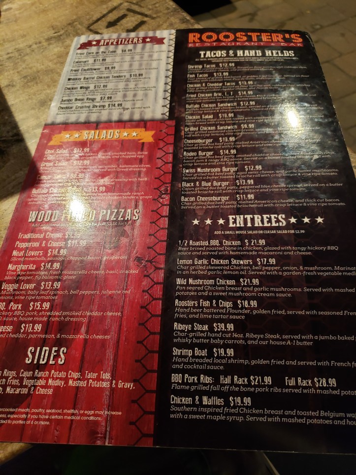 Located at Broadway at the Beach Roosters is a surprisingly good restaurant in between some big names like Paula Deens and HardRock. The service is excellent and they offer a locals discount. The Burgers and Tacos were great choices. Food comes in at 8.5, Atmosphere 8, and Value 8.5 it’s a solid Broadway Restaurant. This is a great option and is generally not as crowded as other places here. Check it out if your in town.