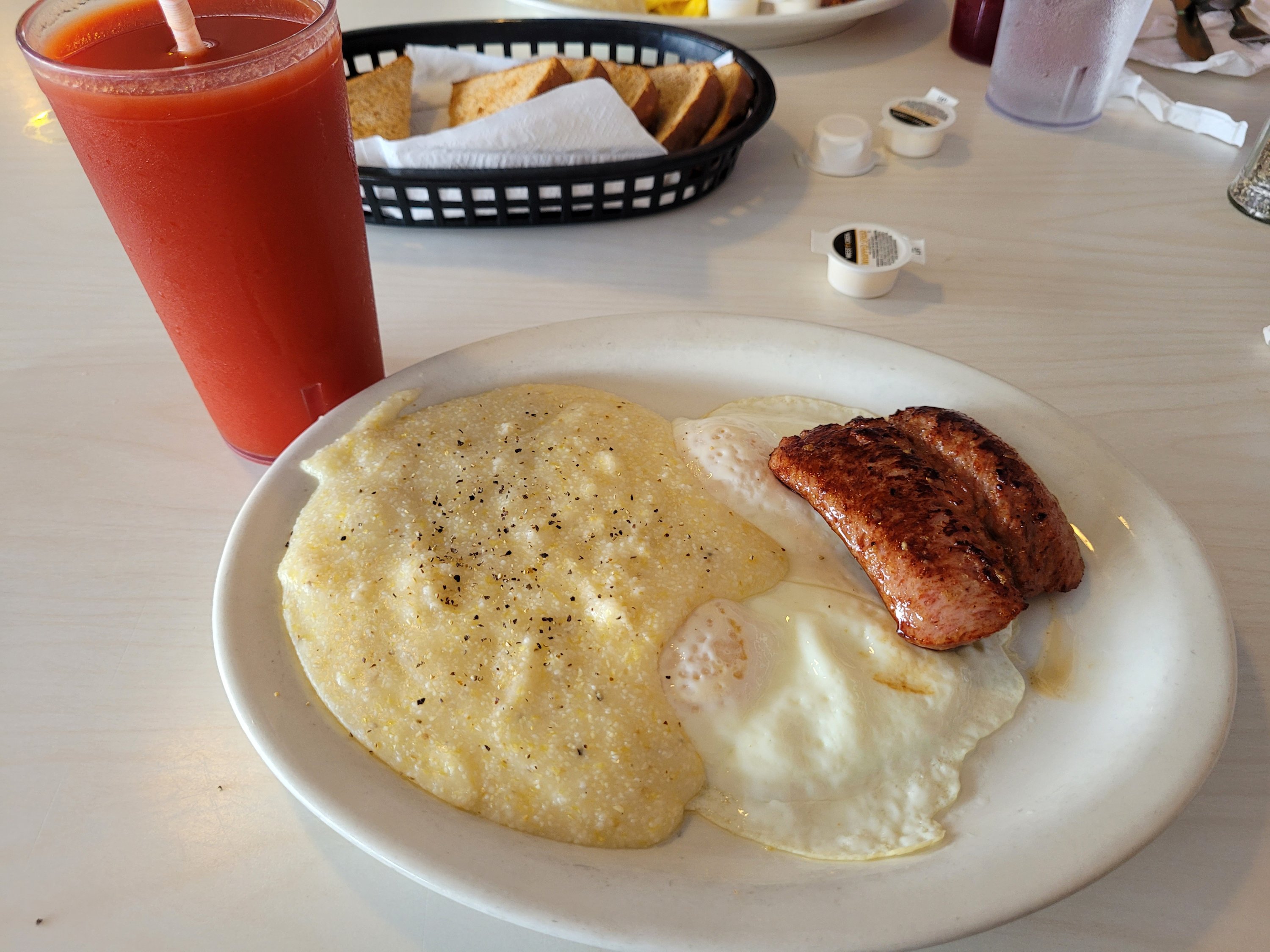 Eggs, Smoked Sausage, Grits