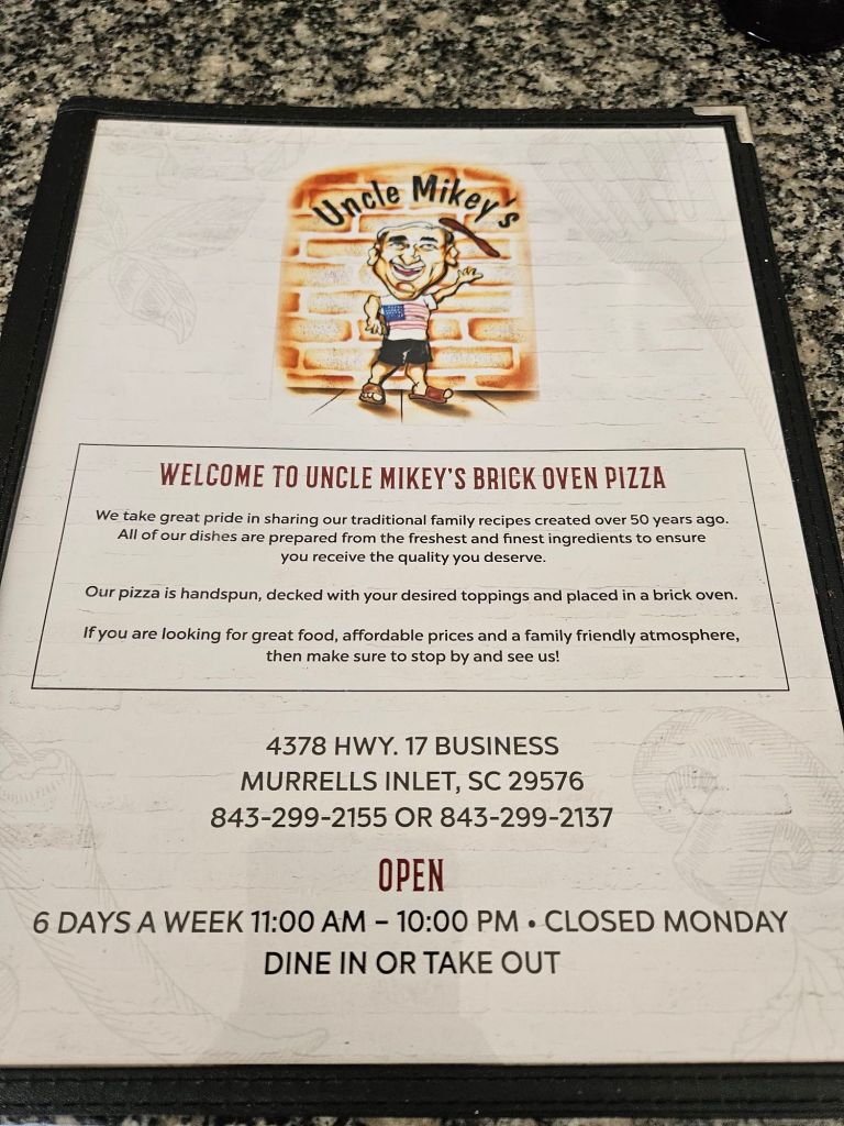 Located in Murrells Inlet is probably one of the best if not the best pizza place in Myrtle Beach. Uncle Mikey’s Pizza is a whole other level of food and experience. All of their food is excellent, especially the meat lovers pizza. On top of that, Uncle Mikey is a larger than life personality. He’s probably the most friendly, caring owner you will ever meet. Food comes in at a 10, Atmosphere 9, Value 10. In terms of pizza, they are my overall favorite. Check it out!
